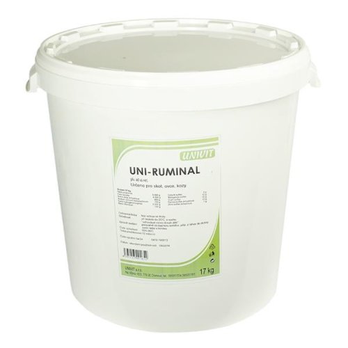 UNI-RUMINAL plv. je schválený veterinárny prípravok, je to podporný a silnejúci prostriedok pre prežúvavce. Obsah a vzájomné pomery uvedených zložiek sú významné pre vytvorenie optimálneho prostredia pre rozmnoženie mikroflóry a mikrofauny v bachore, ďalej pre správnu motoriku predžalúdkov, pre zabezpečenie potreby a produkciu vitamínov B. Prípravok prispieva k úprave porúch energetického metabolizmu a zaisťuje obnovu úžitkových schopností zvieraťa.