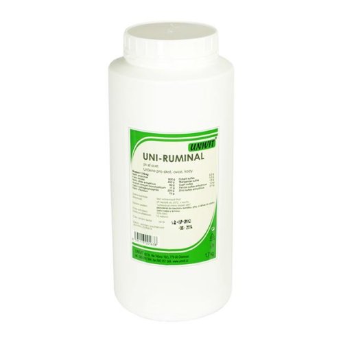 UNI-RUMINAL plv. je schválený veterinárny prípravok, je to podporný a silnejúci prostriedok pre prežúvavce. Obsah a vzájomné pomery uvedených zložiek sú významné pre vytvorenie optimálneho prostredia pre rozmnoženie mikroflóry a mikrofauny v bachore, ďalej pre správnu motoriku predžalúdkov, pre zabezpečenie potreby a produkciu vitamínov B. Prípravok prispieva k úprave porúch energetického metabolizmu a zaisťuje obnovu úžitkových schopností zvieraťa.