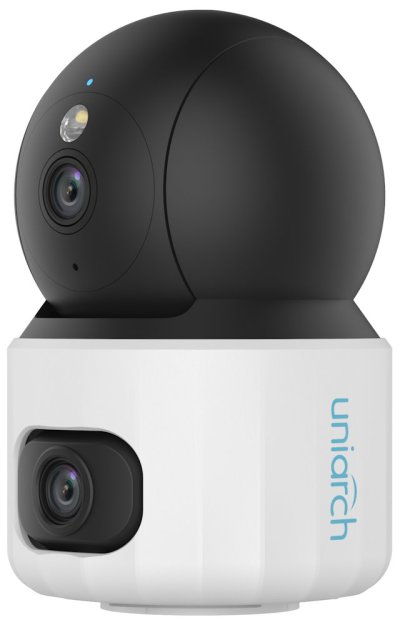 Domáca duálna 3 Mpx + 3 Mpx IP kamera s mikrofónom a reproduktorom je navrhnutá pre sledovanie vnútorných priestorov vo vysokom rozlíšení obrazu 2304 × 1296 pixelov. Kamera môže byť voľne umiestnená kdekoľvek v domácnosti, kancelárii, chate a pod. Výhodou kamery je možnosť otáčania o 355 ° a vertikálny náklon v rozsahu -15 ° až 90 ° . Kamera je vybavená detekciou pohybu, detekciou ľudskej postavy a detekciou zvukových udalostí. Vďaka integrovanému IR+LED prísvitu je možné kameru využívať nepretržite 24 hodín denne. Aplikácia Uniarch vám umožňuje ovládať vašu Wi-Fi kameru kdekoľvek a kedykoľvek.