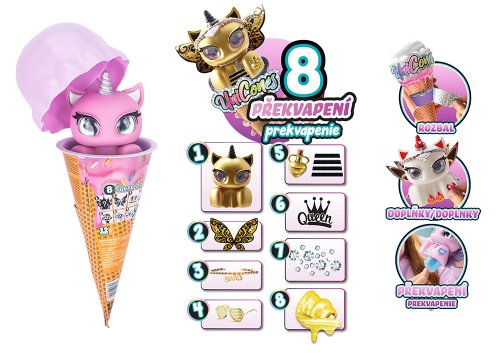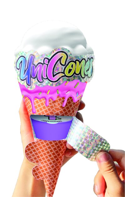 TV položkaPozbieraj ich všetky. V tomto kornúte nájdeš veľa prekvapení. Kortút sa skladá zo 4 častí v ktorých je ukrytý jednorožec a úžasné doplnky, ktoré si môžete vymieňať. Samozrejme nemôže chýbať ani sliz.