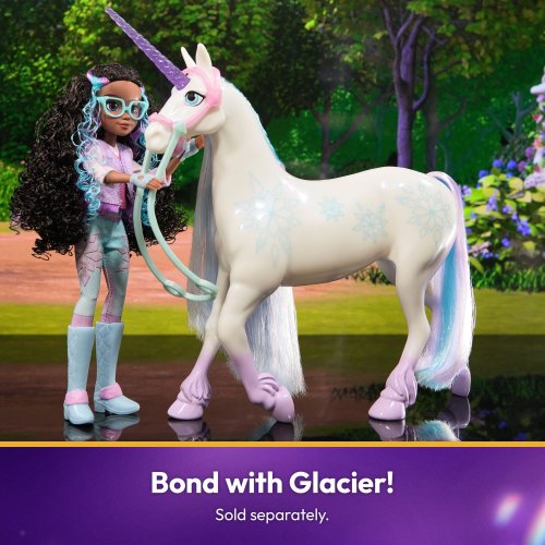 Vytvorte si doma očarujúce dobrodružstvo z Unicorn Academy s módnymi bábikami Sophia, Ava, Isabel, Layla a Valentina! Tieto 24cm módne bábiky, inšpirované animovaným programom od NETFLIXu a knižnými bestsellermi, pôsobia ako živé. Layla je detailne prepracovaná od hlavy až po päty. Jej žiarivá osobnosť tkvie v jej kučeravých fialovo a modro melírovaných vlasoch (vrátane stylingového doplnku) a jej charakteristickej výstroji pre jazdu na jednorožcovi: fialovom tope a veste, fialovo-modrých jazdeckých nohaviciach so znakmi ľadovej mágie, topánkach, rukách! Vďaka 9 kĺbom môže Layla pri ochrane Jednorožčieho ostrova a jeho kúzla zaujať rôzne pózy a vydať sa za dobrodružstvom na svojej jednorožčej kobyli Glacier (predáva sa samostatne)! Kúzelné puto medzi študentmi Unicorn Academy a ich jednorožcami rozprúdia nekonečné príbehy plné detskej predstavivosti. Ak chcete objaviť všetky spôsoby, ako si užiť svet Unicorn Academy so svojimi obľúbenými postavami, hľadajte všetky bábiky a ich jednorožcov (predávajú sa zvlášť) a rozšírte svoj čarovný svet! Hračky s tematikou Unicorn Academy sú perfektným darčekom pre dievčatá k narodeninám alebo akékoľvek iné príležitosti - sú určené pre deti, ktoré majú rady jednorožcov a kone, bábiky a doplnky, domčeky pre bábiky, zberateľské predmety, plyšové hračky a ďalšie. Preneste kúzlo Unicorn Academy k sebe domov vďaka bábike Layly!