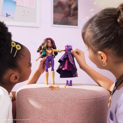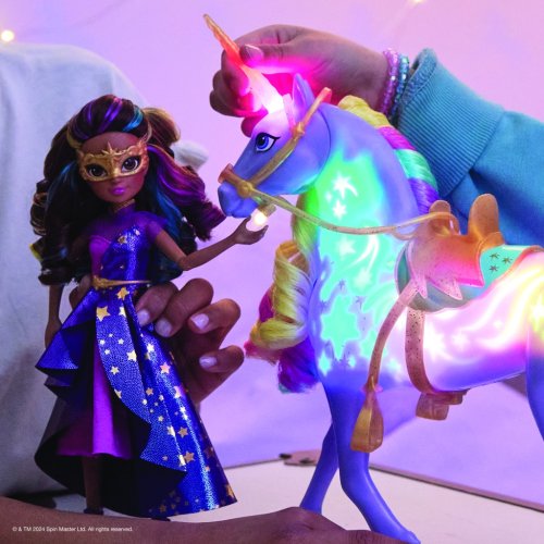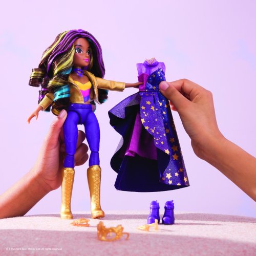 Oslávte čaro víl osudu na maškarnom plese Jednorožčia akadémia s maškarnou bábikou Sofiou! Vďaka tejto 24cm módnej bábike inšpirovanej animovaným programom od NETFLIXu a knižnými bestsellermi pôsobí Sofia ako živá. Sofia sa môže pochváliť autentickými detailmi a 9 doplnkami pre bábiky. Je odetá vo svojej jazdeckej výstroji a pripravená vyraziť za dobrodružstvom na svetelné dúhové Polárce, svojom vernom jednorožcovi (predáva sa samostatne)! Akonáhle príde čas vyraziť na ples, prezlečte Sofiu z jej odnímateľnej bundy, náhrdelníka a topánok do asymetrických šiat s hviezdnym vzorom, opasku, masky a fialových lodičiek. Pomocou hrebeňa a sponky vyčešte jej vlasy s melírom do vhodného účesu. Vďaka 9 kĺbom môže Sofia zaujať rôzne pózy a umožní vám prehrať si scény z programu! Ak chcete objaviť všetky spôsoby, ako si užiť svet Jednorožnej akadémie a rozšíriť ho o svoje obľúbené postavy, prezrite si bábiky Avy a Isabel a ich jednorožcov Lístka a Grékov (predávajú sa samostatne). Kúzelné puto medzi študentmi Jednorožkej akadémie a ich jednorožcami rozprúdia nekonečné príbehy plné detskej predstavivosti. Určené pre deti, ktoré majú rady jednorožcov a kone, bábiky a doplnky, hračky pre bábiky, zberateľské predmety, plyšové hračky a ďalšie. Hračky s tematikou Jednorožčia akadémia sú perfektným darčekom pre dievčatá k narodeninám alebo akékoľvek iné príležitosti. Prineste domov maškarnú bábiku Sofia deluxe z Jednorožčej akadémie!