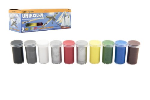 Vodou riediteľné modelárske farby s lesklým povrchom na nátery všetkých typov modelov áut, lietadiel, lodí a ďalej všetkých drobných predmetov z dreva, plastu, kovov, skla, keramiky, betónu a pod.. Sada obsahuje 9 farieb a matný lak zadarmo.