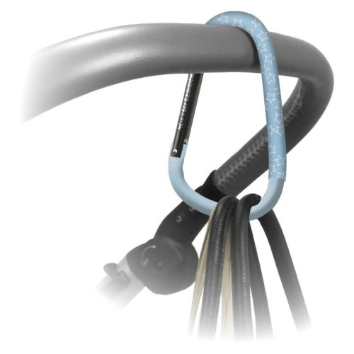 Háčik / karabína na upevnenie kabelky, batohu alebo prebaľovacej tašky na rukoväti kočíka či nákupnom vozíku.