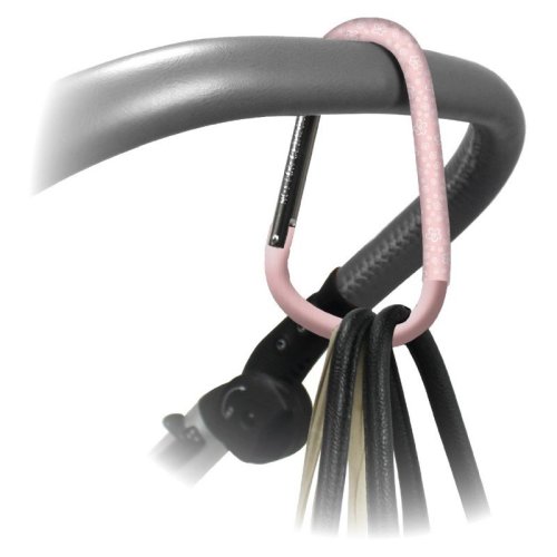 Háčik / karabína na upevnenie kabelky, batohu alebo prebaľovacej tašky na rukoväti kočíka či nákupnom vozíku.