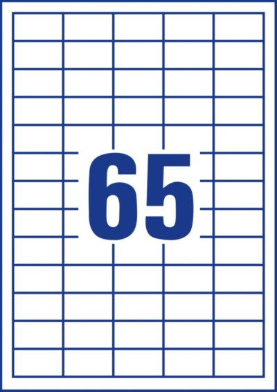 • Počet etikiet, štítkov na archu: 65 ks