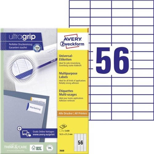 Univerzálne etikety Avery, 52,5 x 21,2 mm, biele