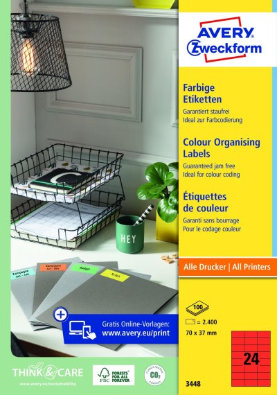 Univerzálne etikety Avery, 70 x 37 mm, červené