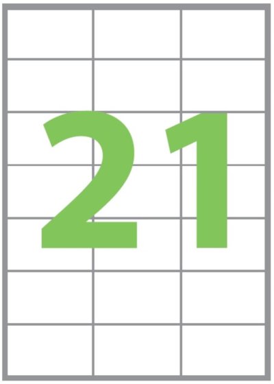 Univerzálne samolepiace štítky Vhodné pre laserové tlačiarne, atramentové tlačiarne a kopírovacie stroje Veľkosť štítku: 70 x 42,3 mm Počet štítkov na liste: 21 Belosť CIE: 150 Technológia QCT-Quatro Clean …
