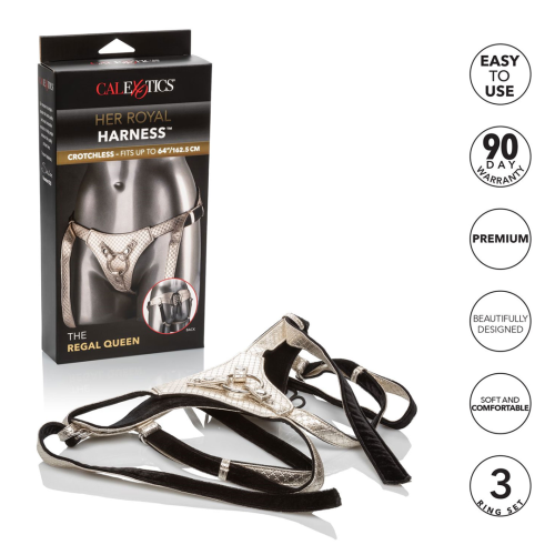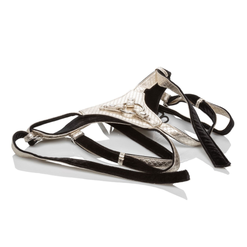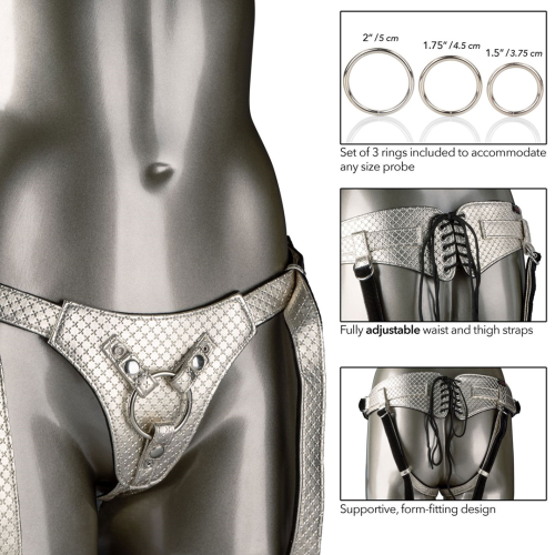 Luxusný postroj, ktorý je vyrobený pre pohodlie s krajkovým dizajnom, plyšovou zamatovou podšívkou a nastaviteľným krytom pracky. Odvážny design bez rozkroku osloví aj tie dominantné s diskrétnymi západkami vyrobenými tak, aby vyhovovali prstenci akejkoľvek veľkosti sondy.