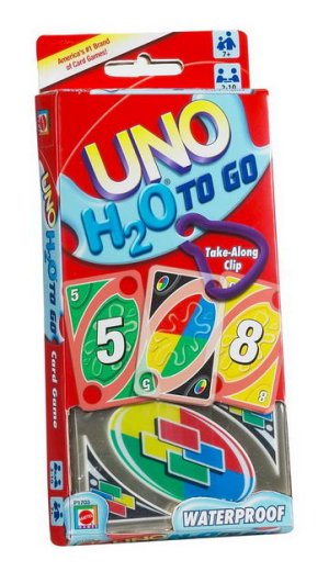 UNO H2O Na cesty - ideálny spoločník na výlety! Vezmite si túto vodeodolnú cestovnú verziu hry UNO kamkoľvek so sebou! Pevné plastové karty sú odolné voči vode, takže si zábavu môžete užiť doma, vonku, na pláži alebo v kempe. Praktická karabína udrží všetky karty pohromade a ľahko ju pripnete k batohu, plážovej taške alebo kempovacej výbave. UNO H2O Na cesty obsahuje 108 kariet a je vhodné pre hráčov od 7 rokov. Pripravte sa na hru kedykoľvek a kdekoľvek!