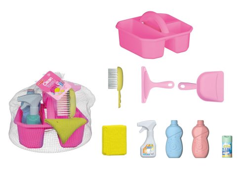 Upratovací set 9ks. Obsahuje vaničku na prenášanie, lopatku a metličku, stierku, handričku, čistiace prostriedky.