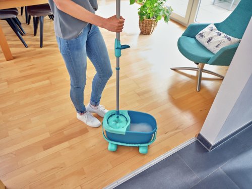 Súprava inovovaného strapcového rotačného mopu CLEAN TWIST DISC a vedra značky Leifheit, perfektná na čistenie dlaždíc a kamenných podláh
