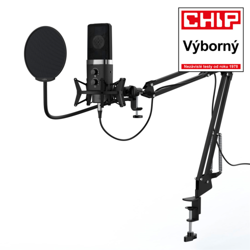 • stream verzia: vysoko kvalitné hliníkové nastaviteľné rameno mikrofónu (upevnenie na stôl)