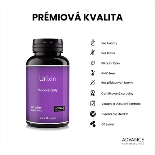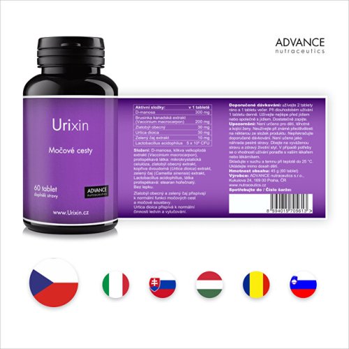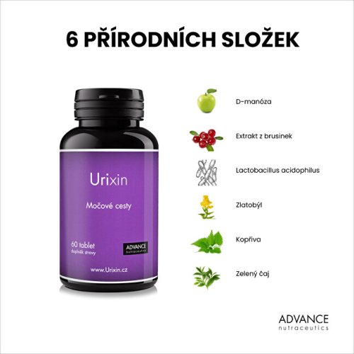 Urixin obsahuje unikátnu kombináciu 6 aktívnych látok na starostlivosť o močové cesty. Obsiahnuté aktívne látky v prípravku Urixin sú prírodného pôvodu a sú vhodné aj na dlhodobé užívanie. Neobsahuje lepok, laktózu ani mliečnu bielkovinu.