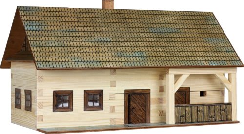 Drevená zlepovacia stavebnica Walachia - Usadlosť. Zlepovacia stavebnica Walachia sú drevené modely domčekov a stavieb z Valašského kraja v mierke 1:32. Základom sú drevené hranolčeky 9x9 mm ak tomu sú v sade vždy všetky papierové doplnky - okná, dvere, strešné časti atď. Na lepenie sa používa lepidlo Herkules, nie je však súčasťou stavebnice. Priložený je montážny návod a malé kapitoly z histórie ľudovej architektúry. Návod pre stavebnicu Walachia nájdete aj tu: Usadlosť. Nižšie je označenie obtiažnosti číslom 1 - 5, pričom 1 je najľahšia. Rozmery: 34 x 18 x 18 cm Počet dielov: 174 Obtiažnosť: 2