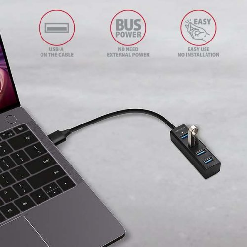USB hub je ideálnym doplnkom pre ultrabooky s malým počtom USB-A portov. Rozbočovač sa nezľakne ani pripojenie k telefónom pomocou vhodnej redukcie OTG alebo USB-A - USB-C. K telefónu alebo tabletu tak pripojíte napríklad flash disk, klávesnicu a myš.