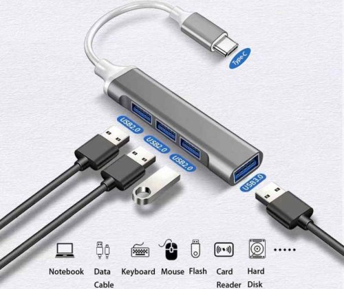 USB hub 1x USB 3.2 konektor typu A + 3x USB2.0 konektor typu A pre pripojenie klávesnice, myši, SSD, flash pamäť, CD-R/RW's, pevných diskov, web kamier, čítačiek pamäťových kariet a ďalších USB zariadení s max. dátovým prenosom až 5 Gigabits/sec