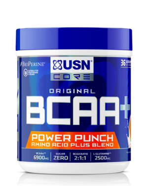 BCAA Power Punch je veľmi efektívny doplnok pri akejkoľvek športovej výžive. Tento suplement obsahuje aminokyseliny s rozvetveným reťazcom (BCAA), ktoré sú zložené z esenciálnych aminokyselín leucínu, izoleucínu, a valínu. Kombinácia týchto troch esenciálnych aminokyselín tvorí približne 1/3 kostrového svalu v ľudskom tele, a hrajú dôležitú úlohu pri syntéze proteínov. Ďalej produkt obsahuje glutamín. Bielkoviny prispievajú k rastu a udržaniu svalovej hmoty. Tento nápoj je veľmi dobre miešateľný a dobre chutiaci. Výrobok obsahuje vitamín B6, ktorý prispieva k zníženiu miery únavy a vyčerpania. Bez obsahu lepku. Odporúčané dávkovanie: