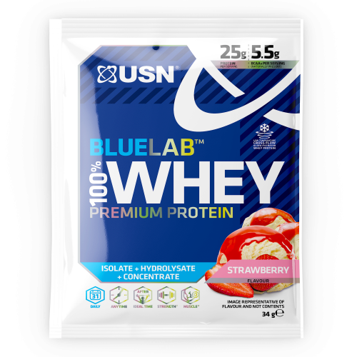 BLUELAB 100% WHEY PREMIUM PROTEIN je ultra prémiová formula bielkovinovej zmesi zloženej z najkvalitnejšieho srvátkového proteínového koncentrátu, hydrolyzátu a izolátu s obsahom 25 g proteínu a 5,8 g BCAA v jednej dávke s maximálnym využitím v tráviacom trakte. Je navrhnutý a formulovaný tak, aby bola zaručená najvyššia kvalita srvátkových proteínov. Pri jeho príprave sú používané technologické postupy ako je napr. ultrafiltrácie, pri ktorých sa používa nízka teplota na získanie extrémne kvalitných proteínov s najlepšími vlastnosťami a najkvalitnejšími látkami. Je používaný profesionálnymi športovcami a športovými tímami v celosvetovom meradle. Táto bielkovinová zmes bola navrhnutá a vyvíjaná pomocou spätnej väzby od našich zákazníkov a zaručuje optimálnu svalovú podporu a regeneráciu, retenciu dusíka, konverziu aminokyselín, najlepšiu chuť a najvyššiu kvalitu proteínov. Pokiaľ Vám záleží na kvalite a využiteľnosti produktov, ktoré konzumujete, a nezáleží na tom, či ste len športový nadšenec alebo profesionálny športovec, či už trénujete iba cez víkendy alebo tvrdo cvičíte celý týždeň, BlueLab 100% Whey Protein Premium je tu pre Vás. Bez obsahu lepku. Odporúčané dávkovanie: