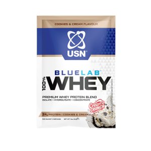 BLUELAB 100% WHEY PREMIUM PROTEIN je ultra prémiová receptúra bielkovinovej zmesi z najkvalitnejšieho srvátkového proteínového koncentrátu, hydrolyzátu a izolátu s obsahom 25 g bielkovín a 5,8 g BCAA v jednej dávke s maximálnym využitím v tráviacom trakte. Je navrhnutý a formulovaný tak, aby bola zaručená najvyššia kvalita srvátkových bielkovín. Pri jeho príprave sa používajú technologické postupy ako je napr. ultrafiltrácia, pri ktorých sa používa nízka teplota na získanie extrémne kvalitných bielkovín s najlepšími vlastnosťami a najkvalitnejšími látkami. Používajú ho profesionálni športovci a športové tímy v celosvetovom meradle. Táto bielkovinová zmes bola navrhnutá a vyvíjaná za pomoci spätnej väzby od našich zákazníkov a zaručuje optimálnu svalovú podporu a regeneráciu, retenciu dusíka, konverziu aminokyselín, najlepšiu chuť a najvyššiu kvalitu bielkovín. Ak vám záleží na kvalite a využiteľnosti produktov, ktoré konzumujete, a nezáleží na tom, či ste len športový nadšenec alebo profesionálny športovec, či už trénujete iba cez víkendy alebo tvrdo cvičíte celý týden, BlueLab 100% Whey Protein Premium je tu pre vás. Bez obsahu lepku. Odporúčané dávkovanie:
