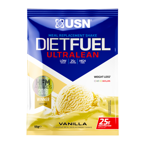 USN Diet Fuel Ultralean je prémiová zmes na prípravu kokteilu s vysokým obsahom bielkovín a vlákniny. Tento výživný nápoj zaisťuje príjem vysoko kvalitných vitamínov a minerálov, dá sa využiť ako plnohodnotné jedlo nielen na cesty. Môžete mať tak pod kontrolou vyváženosť svojho jedálnička. Obsahuje pH stabilnú laktázu, ktorá zlepšuje stráviteľnosť mliečneho cukru (laktózy) ľuďom s problémami s trávením laktózy. Obsah vitamínu D prispieva k udržaniu normálnej činnosti svalov. Vitamín C napomáha funkcii imunitného systému počas intenzívneho fyzického výkonu a po ňom. Horčík prispieva k normálnej syntéze bielkovín ak normálnej činnosti svalov. Riboflavín a vitamín B12 vedie k zníženiu miery únavy a vyčerpania. Vitamín B6 prispieva k normálnemu metabolizmu bielkovín a glykogénu. Obsah biotínu podporuje normálny metabolizmus makroživín a chrómu na udržanie normálnej hladiny krvného tlaku. USN Diet Fuel Ultralean je vďaka svojmu zloženiu vhodný aj pre vegetariánov. Bez obsahu lepku. Odporúčané dávkovanie:
