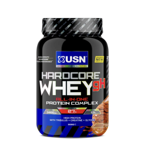 USN Hardcore whey gH je vhodným na regeneráciu a rast svalov. Má vysoký obsah bielkovín 81 g na 100 g. Tiež sacharidy, ktoré prispievajú k obnoveniu normálnej svalovej funkcie po vysoko intenzívnom alebo dlhom fyzickom tréningu vedúcej k svalovej únave a vyčerpaniu zásob glykogénu vo svaloch. Ďalej kreatín, ktorý zvyšuje fyzický výkon počas intenzívneho tréningu. Obsahuje aj Tribulus a Glycín. V jednej dávke dodáte telu 27 g proteínu. Bez obsahu lepku. Odporúčané dávkovanie: