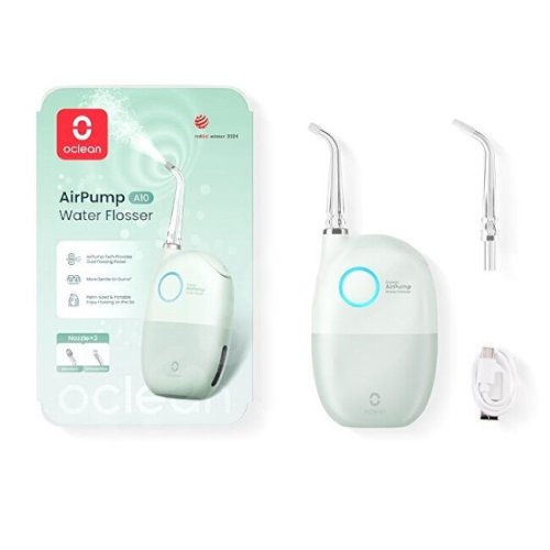 Ústna sprcha Oclean AirPump A10 dopraje vašim zubom a ďasnám tú najlepšiu starostlivosť. Táto kompaktná a prenosná ústna sprcha ponúka inovatívnu technológiu, ktorá zaisťuje efektívne a šetrné čistenie zubov a medzizubných priestorov. Poskytuje dvojitú silu čistenia kombináciou stlačeného vzduchu a vody. Prúd obsahuje až 98% vzduchu, vďaka čomu jemne a efektívne odstraňuje zvyšky jedla aj plak. Ústna sprcha je šetrná k ďasnám. Stlačená voda a vzduch minimalizujú diskomfort a znižujú riziko krvácania ďasien.