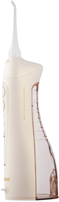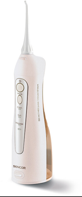 Ústna sprcha SOI 1211GD je navrhnutá pre efektívne a dôkladné čistenie medzizubných priestorov, parodontálnych vačkov a ťažko dostupných miest. Odstraňuje povlak, baktérie a zvyšky jedla, čím pomáha predchádzať paradentóze, tvorbe zubného kameňa, zubného kazu aj nepríjemnému zápachu z úst. Súčasťou balenia sú výmenné nástavce: štandardný pre bežné čistenie, čistič jazyka, nástavec pre citlivé miesta, ortodontická tryska na rovnátka a nosová tryska na prečistenie dutín. Ponúka tri režimy - Regular pre každodenné použitie, Soft pre citlivé oblasti a Pulse pre masáž a prekrvenie ďasien. Sprcha je vhodná aj pri nosení strojčeka a mostíkov, tlak vody dosahuje 275–620 kPa, frekvencia čerpadla je 1400 pulzov za minútu. Má LED indikátor stavu nabitia, objem nádržky 150 ml, batériu Li-ion s výdržou až 56 minút prevádzky a nabíjací čas 8 hodín. Rozmery vrátane trysky sú 275 × 56 × 73 mm, hmotnosť 265 g.