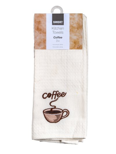 Utierka kuchynská COFFEE, 45 x 70 cm, BA, mix farieb (3 ks). rozmery: 45 x 70 cm materiál: 100% bavlna mix farieb: biela, krémová, béžová balenie: 3 ks Vaflové utierky s výšívkou COFFEE sú nepostrádateľnými …