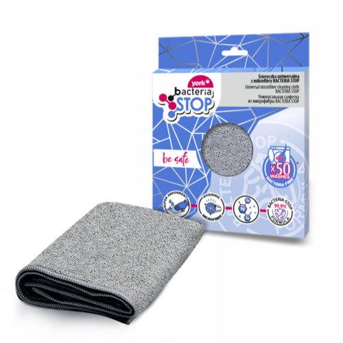 Utierka BACTERIA STOP z mikrovlákna, obsahujúca ióny striebra, ktoré zabraňujú rastu baktérií na povrchu látky. Všestranné použitie umožňuje upratať celý domáci priestor. Zaručuje čistotu a sviežosť bez zanechania šmúh alebo škrabancov. Čistiacu handričku je možné používať namokro aj za sucha bez použitia čistiacich prostriedkov. Možno prať do 40 stupňov C, antibakteriálne vlastnosti pretrvávajú až do 50 praní.