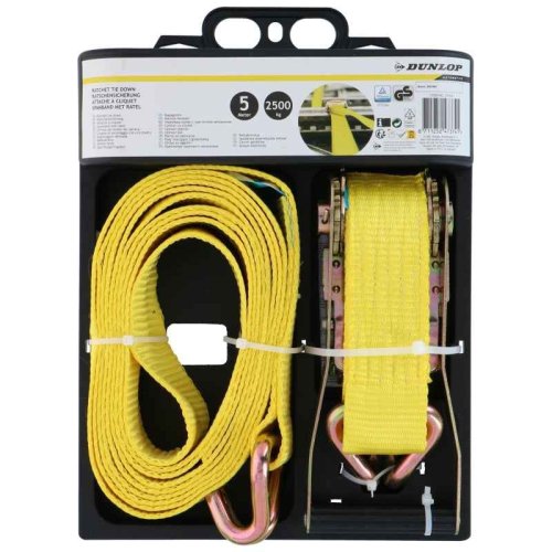 5-metrový račňový popruh od Dunlop je perfektným riešením pre bezpečné zaistenie nákladu počas prepravy. Vďaka svojej robustnej konštrukcii, spoľahlivému račnovému mechanizmu a háčiku ponúka tento upínací popruh stabilitu až 2 500 kg. Dĺžka 5 metrov ponúka dostatok miesta na zaistenie rôznych predmetov, zatiaľ čo račňa zaisťuje pevné a bezpečné držanie. S 5metrovým račňovým popruhom od Dunlop môžete s istotou vyraziť na ceste. Špecifikácia Dunlop napínací popruh 5 ms račňou a háčikomUpínací popruh: 5 mS račňouFarba: ŽltáZnačka: DunlopNosnosť: až 2500