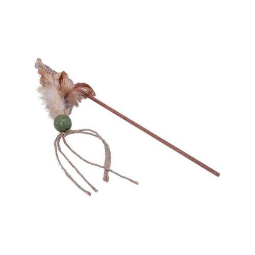 Vábnička s rukoväťou z odolného dreva sapeli má záves s pierkami, guličkou z lisovanej šanty mačacej (catnipu) a povrázkovými strapcami. Hračka stimuluje lovecké inštinkty a posilňuje puto medzi vami a vašou mačkou pri spoločnej, interaktívnej hre. Je vyrobená z bezpečných prírodných materiálov a vhodná pre mačky všetkých vekových kategórií. Dĺžka (cca): 40 cm Materiál: drevo sapeli, šanta, perie Upozornenie: Hračka nie je určená deťom. Mačky môžu reagovať na vôňu šanty mačacie rozdielne. Na použitie iba pod dohľadom. Hračku pravidelne kontrolujte av prípade poškodenia prestaňte používať.