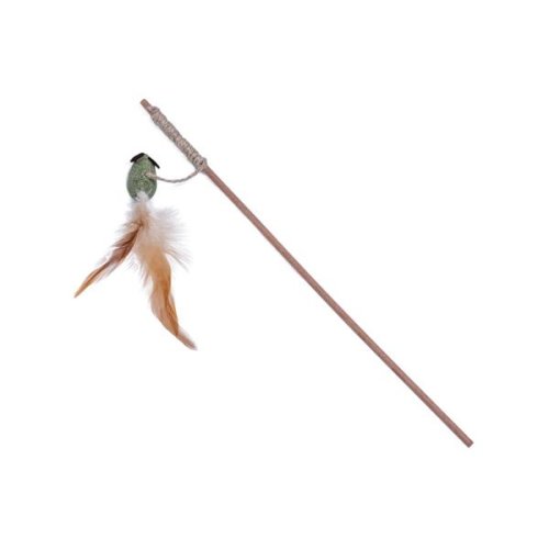 Vábnička s rukoväťou z odolného dreva sapeli má záves s pierkami, myškou z lisovanej šanty mačacej (catnipu) a povrázkovými strapcami. Hračka stimuluje lovecké inštinkty a posilňuje puto medzi vami a vašou mačkou pri spoločnej, interaktívnej hre. Je vyrobená z bezpečných prírodných materiálov a vhodná pre mačky všetkých vekových kategórií. Dĺžka (cca): 40 cm Materiál: drevo sapeli, šanta, perie Upozornenie: Hračka nie je určená deťom. Mačky môžu reagovať na vôňu šanty mačacie rozdielne. Na použitie iba pod dohľadom. Hračku pravidelne kontrolujte av prípade poškodenia prestaňte používať.