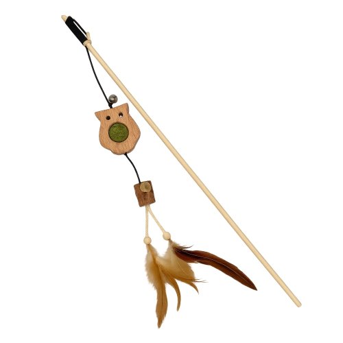 Doprajte svojej mačke hodiny zábavy a pohybu s touto štýlovou vábničkou. Hračka je tvorená pevným, pohodlne uchopiteľným prútom a odolnou šnúrkou, na konci ktorej je drevená hračka s ukrytým catnipom .
