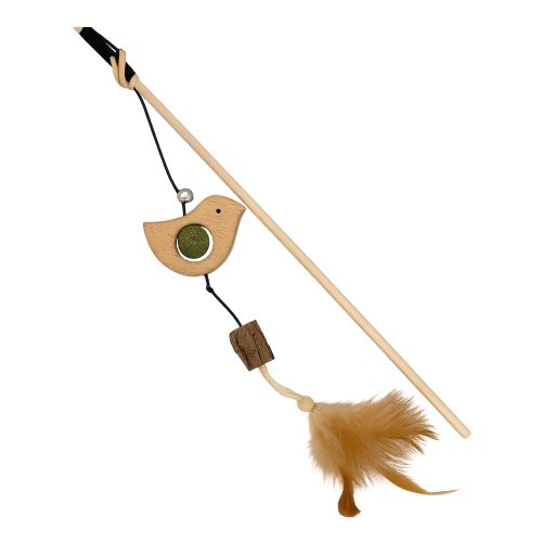 Doprajte svojej mačke hodiny zábavy a pohybu s touto štýlovou vábničkou. Hračka je tvorená pevným, pohodlne uchopiteľným prútom a odolnou šnúrkou, na konci ktorej je drevená hračka s ukrytým catnipom .