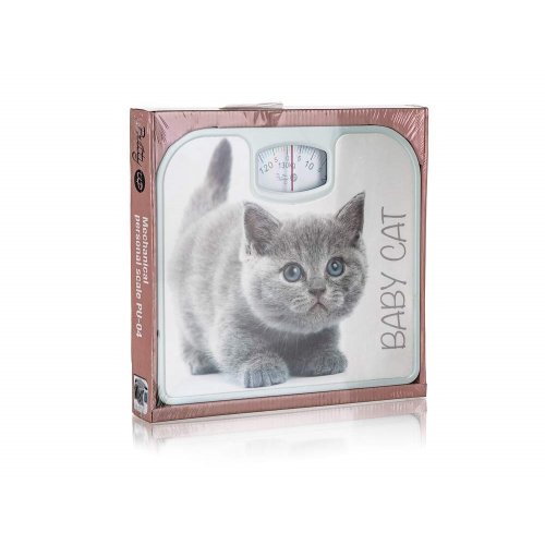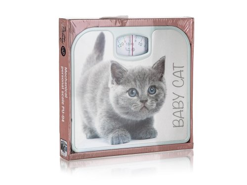 Osobná mechanická váha PU-04, s dekorom mačiatka, je vhodným doplnkom každej domácnosti. Váha má dostatočne veľký a dobre čitateľný ukazovateľ a koliesko na vynulovanie. Maximálna nosnosť 130 kg.