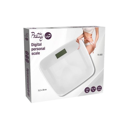 Osobná digitálna váha PU-003 v bielej farbe, s LCD displejom a možnosťou váženia v kg a lb. Indikátor slabej batérie a preťaženia, automatické vypnutie.