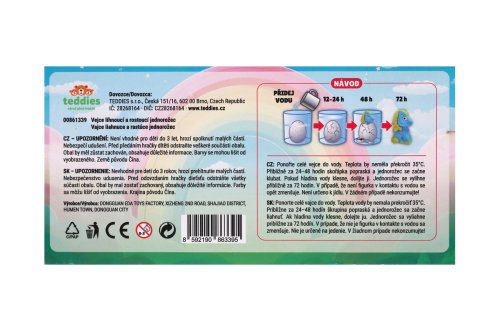 Objavte kúzlo s liahnúcim a rastúcim jednorožcom ukrytým vo vajci! Táto magická hračka poteší každé dieťa, ktoré miluje prekvapenie, rozprávky a fantáziu. Stačí vajcia ponoriť do vody a počas niekoľkých hodín začne pukať - z jeho vnútra sa vyliahne roztomilý jednorožec. Ale zábava tým nekončí! Jednorožec bude ďalej rásť každým dňom, kým nedosiahne svoju plnú veľkosť. Hračka podporuje detskú zvedavosť, trpezlivosť a radosť z objavovania. Vďaka jednoduchému použitiu a pútavému výsledku sa stáva ideálnym darčekom pre malé aj väčšie deti. Vajcia s rastúcim jednorožcom je bezpečné, hravé a pripravené na svoju kúzelnú premenu - stačí len voda a trochu trpezlivosti. Veľkosť vajíčka: 6 cm Rozmer balenia: 8 × 11 cm Vhodné pre deti od 3 rokov