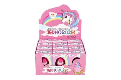 Perfektný darček pre obdivovateľky jednorožcov a tiež pre milovníčky prekvapení. Vo vajci je ukryté prekvapenie vo forme jednorožca. Aby sa ale z vajíčka vykĺbal, je nutné ho ponoriť do misky s vlažnou vodou. Približne za 24 - 48 hodín škrupina popraská a jednorožec sa začne klbať. Postupne tak môžu deti pozorovať, ako sa z vajíčka liahne. Ako bude vyzerať obľúbený jednorožec sa dozviete za cca 72 hodín. Rozmer krabičky: 7,5 x 10,5 x 5 cm Vhodné pre deti od 3 rokov