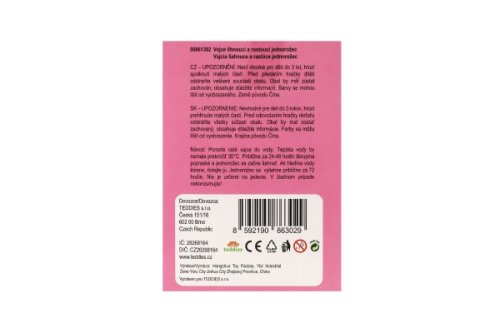 Vo vajíčku je ukryté prekvapenie vo forme jednorožca. Aby sa ale z vajíčka vykĺbal, stačí ponoriť vajíčko do misky s vlažnou vodou. Približne za 24 - 48 hodín škrupina popraská a jednorožec sa začne klbať. Deti tak môžu pozorovať, ako sa jednorožec liahne z vajíčka. Ako bude vyzerať sa dozvedia za cca 72 hodín. Rozmer krabičky: 9,5 x 13 cm Vhodné od 3 rokov