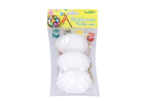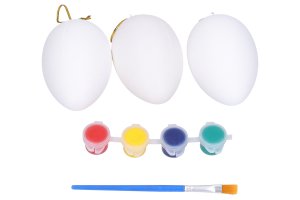 Vajíčka plastové na vyfarbenie o veľkosti 5x8 cm 3 ks. Súčasťou balenia farby + štetec.