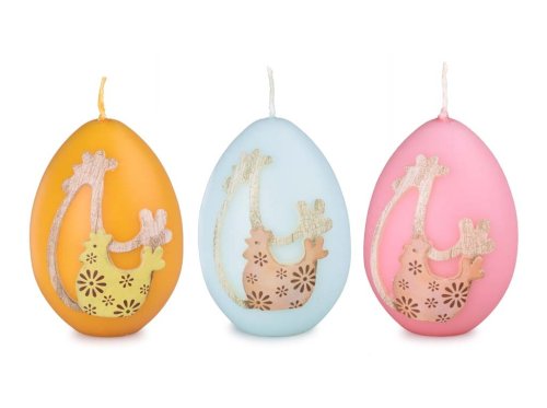 Táto dekoratívna sviečka v tvare vajíčka o veľkosti 80 mm je zdobená pôvabnou aplikáciou sliepočky, ktorá dodáva výrobku typicky veľkonočný a veselý charakter. Farebný mix umožňuje ľahké zladenie s akoukoľvek jarnou alebo sviatočnou výzdobou. Sviečka sa skvele hodí do aranžmánov, košíčkov, na sviatočný stôl alebo ako milá drobnosť pre obdarovanie. Vytvorí útulnú atmosféru a prinesie do interiéru príjemné jarné naladenie. Tovar je dodávaný v mixe. Doručovaný tovar je vyberaný náhodne a nie je možné vybrať konkrétne prevedenie.