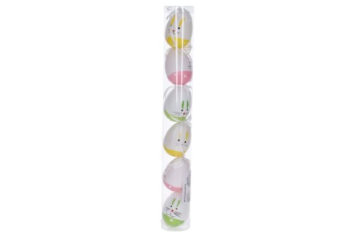 Vajíčko dekoračné plastové farebné 6 cm. 6 ks v tube. Cena za jednu tubu.