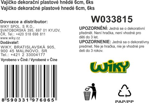 Vajíčko dekoračné plastové hnedé o veľkosti 6 cm. 6 ks na preložke. Cena za preložku.