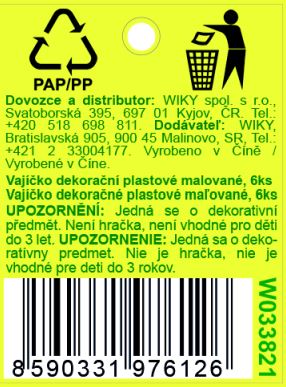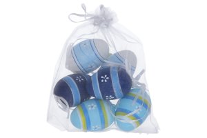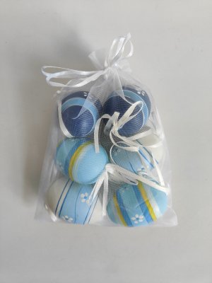 Vajíčko dekoračné plastové maľované o veľkosti 6 cm. 6ks v organza sáčku. Cena za jeden organza sáčok.