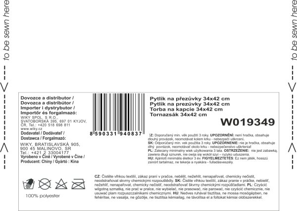 Vak na chrbát / vrecko na prezuvky o veľkosti 34x42 cm. Rôzne farebné prevedenie.