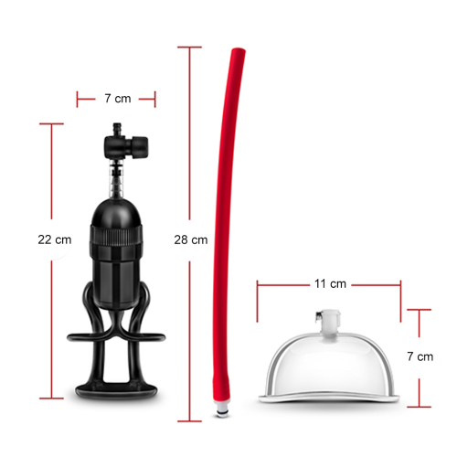 Rozmery: Odsávacia miska: 11 x 8,1 cm s hĺbkou 5,3 cm Celková výška pumpičky s ventilom: 20cm Dĺžka hadičky: 27cm