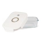 Dóza je vyrobená z kvalitného borosilikátového skla , bezpečného pre styk s potravinami a odolného voči nízkym aj vysokým teplotám (-20 až +400 ° C).