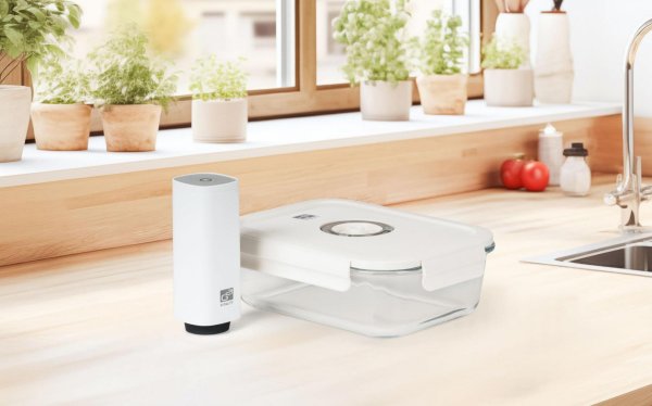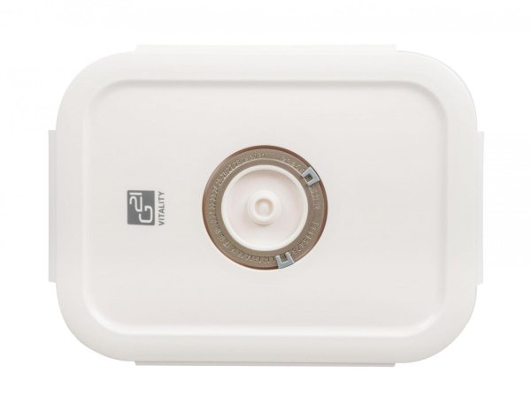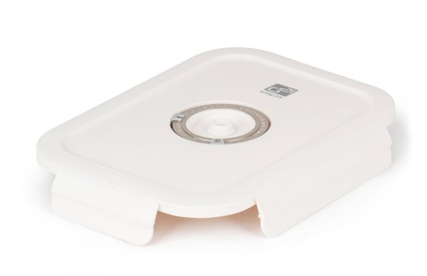Plastové veko je vybavené vákuovacím ventilom a praktickým nastavovaním dátumu . Budete tak vedieť, kedy boli potraviny vákuované alebo do kedy sa majú spotrebovať.